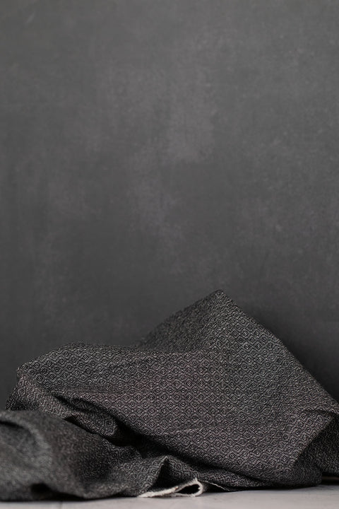 A medium-weight yarn-dyed cotton, this fabric is covered by an interlocking diamond-like pattern. As this is a dobby weave, the grey and off-white yarn used means the fabric has a different colour on either side. The reverse side is perfect for use as a highlight in garments.